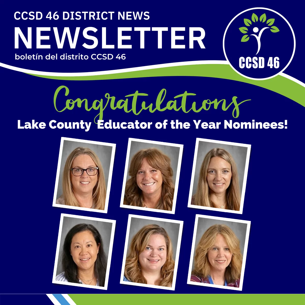 Download the CCSD 46 District Calendar for a handy reference of holidays, institute days, and half-day early release days.